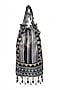 Featuring a black and white rectangular bag in cotton dupion base with crystals, tassels, and beads embroidery including print. It has wrist straps and drawstrings.
