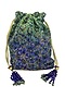 Featuring an indigo and green rectangular potli bag in raw silk base with embroidery and detachable metal chain. It has a drawstrings and cotton dupion lining.