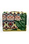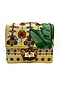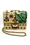 Featuring a yellow sling bag in cotton canvas base with geometric print, turn lock including mirror and bead embroidery. It has a cotton canvas lining.