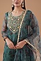 Featuring a grey kurta in chanderi organza base with floral print and gota patti work. It is paired with contrasting pants and a dupatta.
