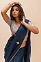 Featuring a yale blue saree in chinon base with gota patti work. It is paired with a contrasting grey blouse in jaam cotton silk base and a potli bag.