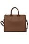 Featuring a hickory brown laptop bag in faux leather base with dual carry handle, adjustable strap, and fabric lined interior. It has three card case slots with key ring.