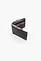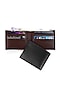 Featuring a dark brown bi-fold wallet in faux leather base with two interior pockets, two bill compartments, and six credit card slots. It has a taffeta lining and metal hardware.