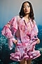Pink Crinkle Chiffon & Viscose Printed Ruffled Sheer Blouse