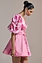 Pink Italian Cotton Satin & Satin Floral Printed Mini Wrap Dress