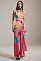 Featuring rosy pink pants in crinkle chiffon and viscose base with floral print. Accentuate it with a top, minimal jewellery and heels for a complete look.