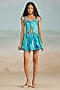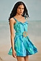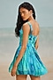 Turquoise Viscose Darla Feather Printed Tiered Corset Mini Dress