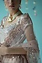 Presenting an elegant peach raw silk lehenga set with mirror, thread, and gota patti embroidery. The lehenga set includes a matching blouse and a net dupatta. This versatile set is crafted with the finest materials and will accentuate your wedding, sangeet, engagement or trousseau look.