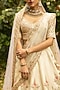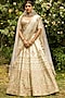 This occasion-ready white lehenga in raw silk is embellished with silk thread, dabka, sequins, cutdana and zardosi hand embroidery. Complementing the look is a matching blouse and two net dupattas. Style the look with dangler earrings and heels for the perfect bridesmaid outfit.