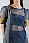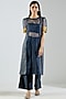 Featuring a dark grey kurta in chanderi and organza base. It is paired with matching pants and a bralette.