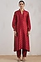 Featuring a red kurta in chanderi base. It is paired with matching salwar pants.