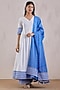 Featuring a white anarkali in cotton base with print. It is paired with matching palazzo pants and dupatta.