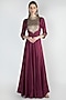Featuring a wine gown in thick rayon satin base with sequins, dori and zardosi marodi embroidery. It has yoke patch and collar detailing.