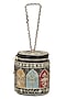Featuring a black potli in leather base with jharokha motifs, thread and zari embroidery. It has a leather lining, zip closure and gold chain handle. This elegant piece is perfect for festive occasions and evening events, adding a touch of sophistication to any outfit.