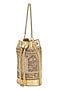 Featuring a gold potli in leather base with zari embroidery. It has a jacquard lining and chain drawstring. This elegant piece is perfect for festive occasions and evening events, adding a touch of sophistication to any outfit.