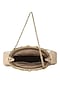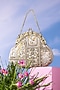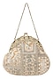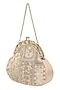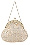 Featuring a gold potli in satin base with zardosi and pearls hand embroidery. It has a satin lining, an antique gold wrist chain and a leather card case.