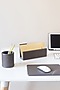 The Leather Garden Home and living presents a hand-woven oak collection of slate grey leather pen holders, individually crafted by traditional artisans. Complete the look with Oak Letter Rack and Mousepad to elevate your working space with a touch of artisanal elegance.
