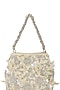 Featuring an ivory handcrafted potli in leather base with 3D petal, bead work and floral embroidery. It has a jacquard lining, magnetic closure and metal chain handle. This elegant piece is perfect for festive occasions and evening events, adding a touch of sophistication to any outfit.