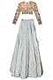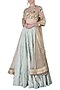 Beige and Mint Blue Floral Embroidered Lehenga Set