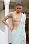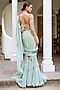 Featuring a green concept saree in tulle and silk base with embroidery. It is paired with an embroidered corset. Accessorize it with statement jewellery and heels for weddings or sangeet ceremonies.
