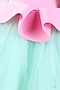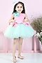 Pink & Sea Green Neoprene Embroidered Flared Dress For Girls