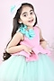 Featuring a pink and sea green flared dress for girls in neoprene and net base with floral work. It is paired with a hair accessory. Accessorize this designer dress with sandals for any special occasion, birthday party or event.