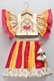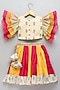 Featuring a beige and yellow lehenga for girls in organza base with embroidery. It is paired with a blouse. Accessorize it with matching hair accessories and sandals for a stylish ensemble, ideal for festive occasion, pooja or wedding ceremonies.