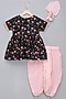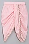 Featuring a black angrakha kurta for girls in cotton silk base with lotus print. It is paired with pink dhoti pants and a dupatta. Style it with sandals and hair accessories for a festive occasion.