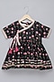 Black Cotton Silk Lotus Printed Angrakha Kurta Set For Girls