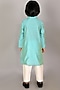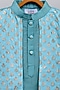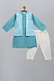 Featuring a blue kurta for boys in cotton silk base with an attached jacket. It is paired with white pyjama pants. Style it with mojaris and a watch for a wedding ceremony or festive occasion.