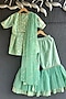 Featuring a green kurta for girls in cotton silk and chanderi base with an attached dupatta. It is paired with sharara pants. Style it with sandals and hair accessories for a festive occasion.