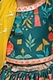 Featuring a green lehenga for girls in cotton silk base with print. It is paired with a blouse and a dupatta. Style it with sandals and hair accessories for a festive occasion.