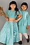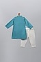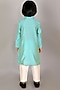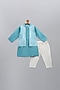 Light Teal Blue Kurta Set With Attached Jacket For Boys