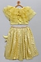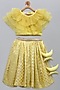 Featuring a lime yellow lehenga for girls in cotton base with zari embroidery. It is paired with an organza ruffled blouse. Accessorize it with matching hair accessories and sandals for a stylish ensemble, ideal for festive occasion, pooja or wedding ceremonies.