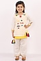 Off-White & Yellow Cotton Silk Embroidered Kurta Set For Girls