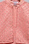 Featuring a pastel peach kurta for boys in cotton silk base with an attached jacket. It is paired with white pyjama pants. Style it with mojaris and a watch for a wedding ceremony or festive occasion.