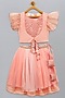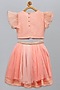 Featuring a peach double-layered lehenga for girls in net base. It is paired with a cotton silk frilled top. Accessorize it with matching hair accessories and sandals for a stylish ensemble, ideal for festive occasion, pooja or wedding ceremonies.