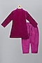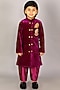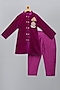 Purple Velvet Embroidered Bandhgala Set For Boys