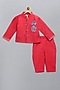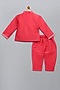 Red Cotton Silk Embroidered Bandhgala Set For Boys