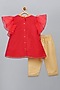 Featuring a red kurta for girls in cotton silk base with embroidery. It is paired with beige pyjama pants. Style it with sandals and hair accessories for a festive occasion.