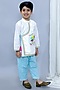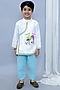 White Cotton Poplin Digital Printed Angrakha Style Kurta Set For Boys