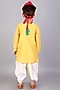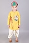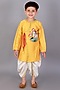 Yellow Cotton Silk Pichwai Embroidered Kurta Set For Boys