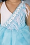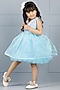 Featuring a blue dress for girls in cotton, silk satin, organza and tulle base with bow detailing and embroidery. Accessorize it with matching hair accessories and sandals for a stylish ensemble, ideal for any festive occasion or birthday party.
