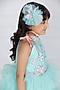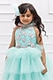 Featuring a blue dress for girls in cotton, silk satin and tulle base with embroidery. Accessorize it with matching hair accessories and sandals for a stylish ensemble, ideal for any festive occasion or birthday party.