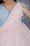 Featuring a pink dress for girls in cotton, silk satin, organza and tulle base with bow detailing and embroidery. Accessorize it with matching hair accessories and sandals for a stylish ensemble, ideal for any festive occasion or birthday party.