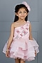Featuring a pink dress for girls in cotton, silk satin and tulle base with embroidery. Accessorize it with matching hair accessories and sandals for a stylish ensemble, ideal for any festive occasion or birthday party.