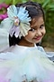 Featuring a white dress for girls in cotton, silk satin and tulle base with hand embroidery. Accessorize it with matching hair accessories and sandals for a stylish ensemble, ideal for any festive occasion or birthday party.