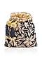 Featuring a black velvet potli bag hand embroidered with peetha zardozi work in floral design. It is embellished with a gold chain and matching handmade tassel latkans.