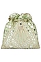 Featuring a mint green potli bag in raw silk base hand embroidered with zardozi and mirror work in an aztec design. It is embellished with a gold chain and matching hand made tassel latkans.