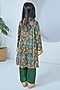Featuring a green A-line kurta for girls in modal base. It is paired with salwar pants. Style it with cute hair accessories and sandals for a festive occasion or wedding ceremony.